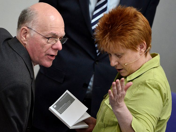 Bundestagspräsident Norbert Lammert (CDU) diskutiert mit seiner Stellvertreterin Petra Pau (Linke) über den Abbruch der Sitzung.