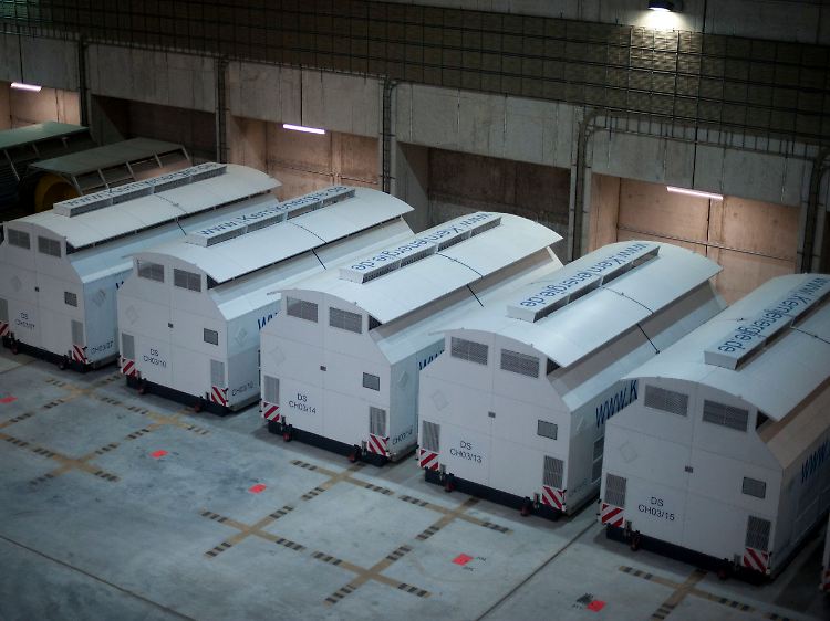 Im Atommüll-Zwischenlager Gorleben stehen bereits 91 Behälter mit stark strahlenden Abfällen, 11 weitere kommen jetzt dazu. Die Behälter werden in Dannenberg vom Zug auf Speziallastwagen umgeladen, die noch rund 20 Kilometer bis zum Zwischenlager zurücklegen müssen. In der oberirdischen Lagerhalle kühlen die bis zu 400 Grad Celsius heißen Abfälle bis zu 40 Jahre lang ab.