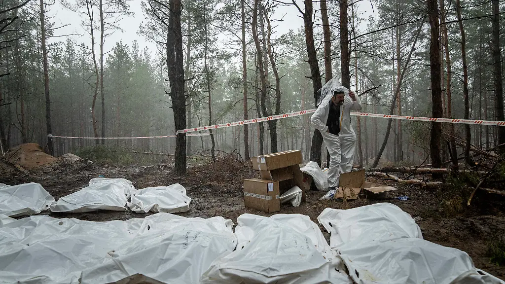 Der ukrainische Präsident Wolodymyr Selenskyj sagte, es seien an mehreren Stellen ganze Familien und Menschen mit Folterspuren verscharrt worden. Der Menschenrechtsbeauftragte des ukrainischen Parlaments, Dmytro Lubinez, nannte eine Zahl von mehr als 1000 Menschen, die in den russisch besetzten Gebieten der Region Charkiw gefoltert und getötet worden seien. Bei den über 440 Leichen in dem Massengrab in Isjum handelt es sich nach Angaben von Polizeichef Ihor Klymenko überwiegend um Zivilisten. Die menschlichen Überreste würden exhumiert. Das Menschenrechtsbüro der Vereinten Nationen (UN) will Beobachter nach Isjum senden.