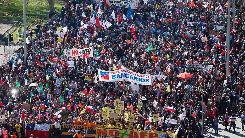 Hunderttausende Menschen haben am Sonntag in der chilenischen Hauptstadt Santiago und anderen Teilen des Landes gegen das noch aus der Zeit der Pinochet-Diktatur stammende System der privaten Rentenkassen demonstriert. Allein in der Hauptstadt Santiago gingen den Veranstaltern zufolge 600.000 Demonstranten auf die Straße. Nach Angaben der Polizei waren es 80.000. Kundgebungen gab es auch in den anderen großen Städten des Landes.