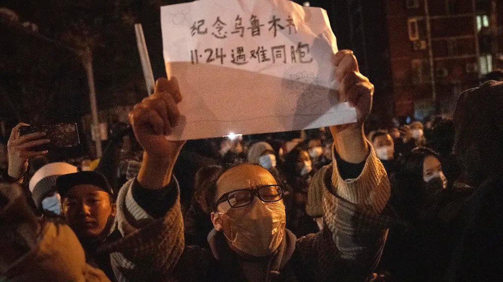 Schon am Samstagabend war es in Schanghai zu Protesten gekommen. Hunderte von Menschen versammeln sich zu einer Kerzenmahnwache auf der Ürümqi-Straße. Viele von ihnen halten weiße Papierbögen hoch - ein symbolischer Protest gegen die Zensur. In Sprechchören rufen sie immer wieder: "Xi Jinping, lege dein Amt nieder." Wie bei den Studentenprotesten von 1989 werden auch diesmal Aktionen von Studierenden organisiert. Am Sonntag formiert sich Protest vor der elitären Tsinghua Universität in Peking. Ein Student hält ein weißes Blatt hoch. Die Kommilitonen rufen in Endlosschleife: "Demokratie, Rechtssystem, Meinungsfreiheit."