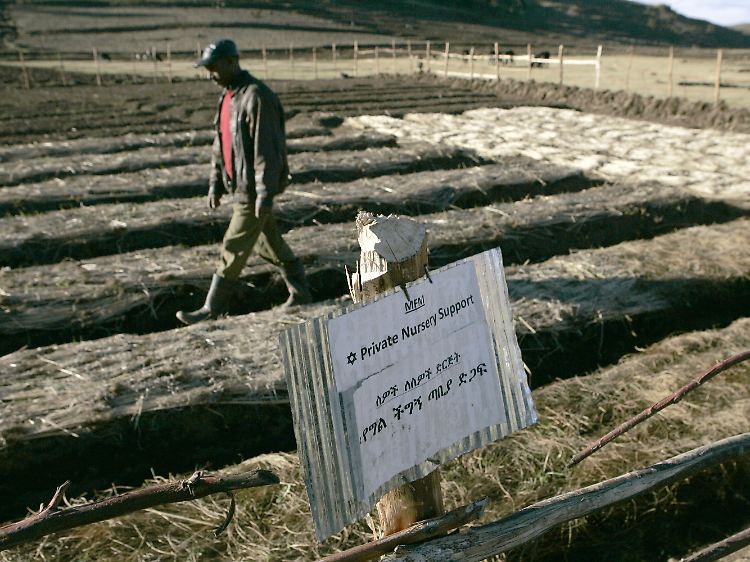 Ein Bauer geht über seinen Acker in Asagir, Äthiopien. Alemneh Abera ist der erste in der Region, der den Terrassenbau ausprobiert hat. Von der Hilfsorganisation "Menschen für Menschen" des Schauspielers Karlheinz Böhm gab es die nötige Starthilfe.