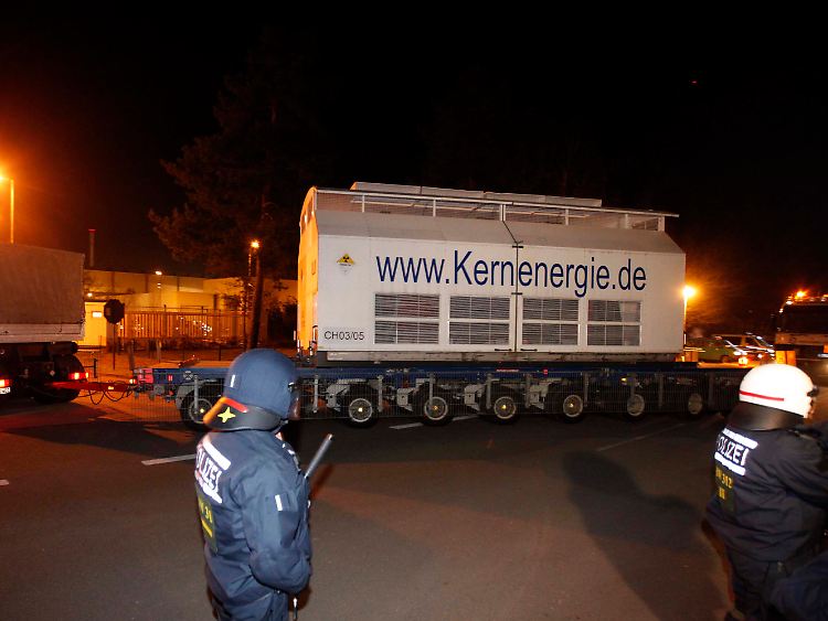 Auch die letzten 20 Kilometer auf dem Weg ins Zwischenlager wurden noch von einem riesigen Polizeiaufgebot gesichert. Dabei kam der Konvoi zeitweise nur im Schritttempo voran. Trotz der hohen Sicherheitsvorkehrungen gelang es zwei Atomkraftgegnern, auf einen der Tieflader zu klettern und den Tross damit kurz vor dem Ziel noch einmal eine Stunde aufzuhalten.