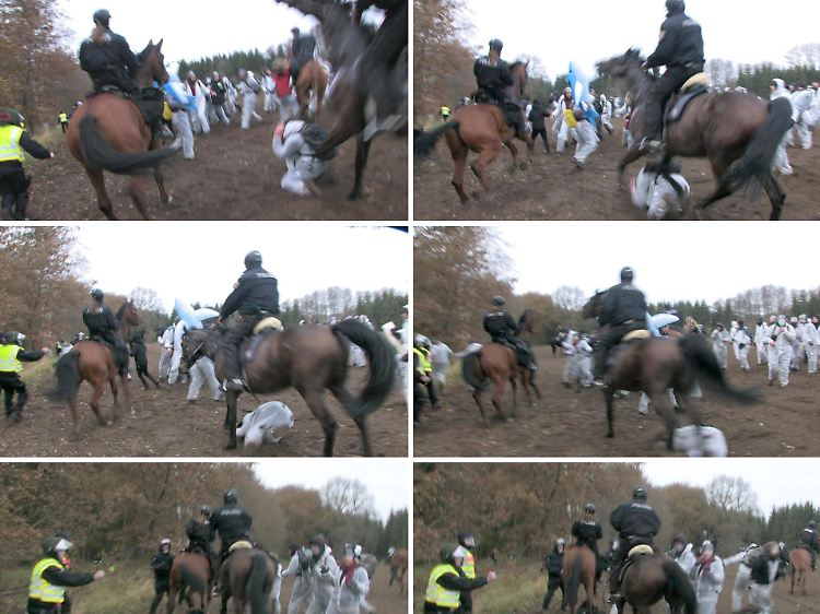Die Polizei sei überzogen gegen die Blockierer vorgegangen. Bis zuletzt hatten die Einsatzkräfte Wasserwerfer gegen einzelne Demonstranten eingesetzt. Diese sollen Beamte unter anderem mit Feuerwerkskörpern und nagelgespickten Golfbällen beworfen und Strohballen angezündet haben.