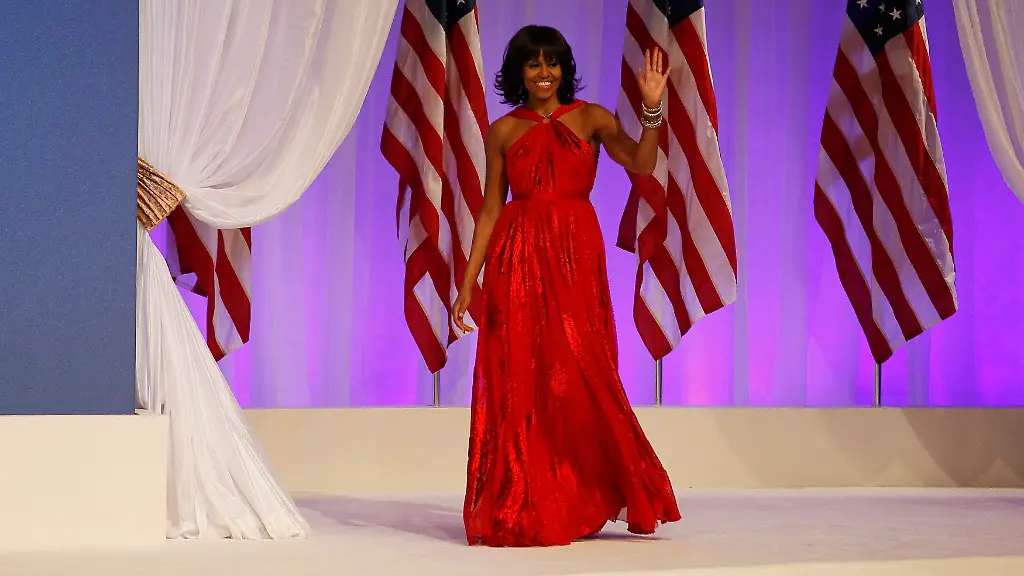 Zu den berühmten Washingtoner Bällen nach der Vereidigung des US-Präsidenten erschien die First Lady der USA, Michelle Obama, in einem leuchtend samtroten, aber ansonsten schlicht-fließenden Kleid, um mit ihrem Mann, dem 44. Präsidenten der Vereinigten Staaten, Barack Obama, die obligatorischen Eröffnungstänze zu absolvieren.