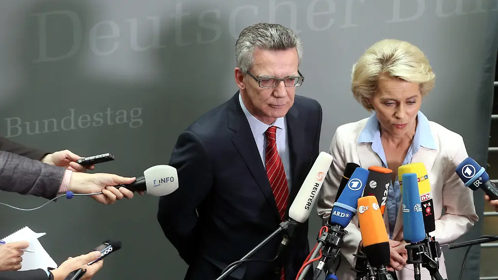 Demonstrativ traten die beiden die beiden CDU-Politiker de Maizière und Verteidigungsministerin Ursula von der Leyen nach ihrer rund zweistündigen gemeinsamen Befragung im Ausschuss zusammen vor die Presse. Fragen wurden nicht zugelassen. Von der Leyen hatte nach jahrelanger Kritik und zahlreichen, zum Teil widersprüchlichen Gutachten Ende April entschieden, dass das Gewehr in seiner jetzigen Version ausgemustert wird.