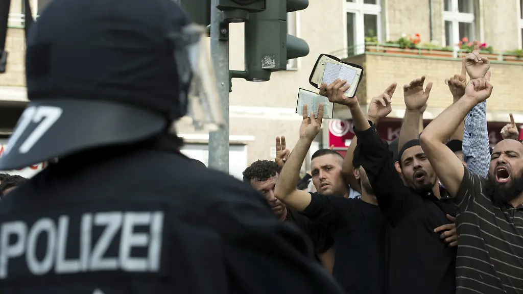 In der Hauptstadt stellen sich mehr als 1000 Menschen der Splitterpartei Pro Deutschland entgegen. Die Rechtspopulisten provozieren vor allem mit Mohammed-Karrikaturen und Schildern mit durchgestrichenen Moscheen. Zu Ausschreitungen wie in Bonn kommt es aber nicht. Einzelne Teilnehmer werfen Flaschen und Farbeimer auf die Islam-Gegner.