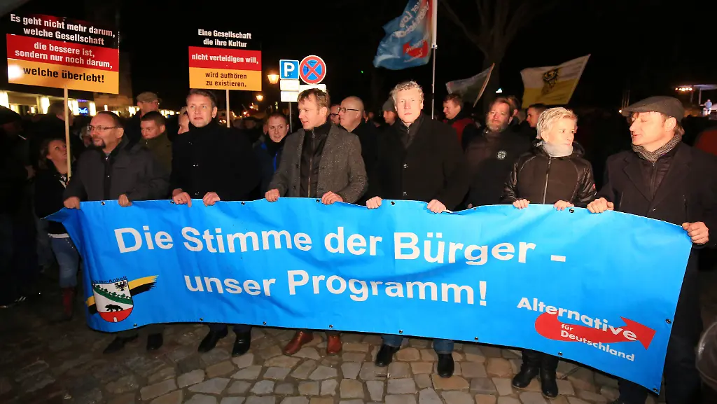 Zu der Demonstration der rechtskonservativen Alternative für Deutschland (AfD) waren laut Polizei rund 600 Teilnehmer gekommen. Mitte Dezember waren es noch 750 gewesen, im November rund 1500. Angeführt wurde der Demonstrationszug über den Domplatz unter anderem von Björn Höcke, dem Vorsitzenden der AfD-Fraktion im Thüringer Landtag, und dem Landesvorsitzenden der AfD in Sachsen-Anhalt, Andre Poggenburg.