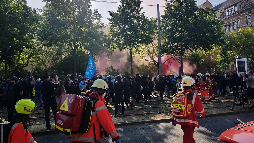 In Leipzig hat es erneut Auseinandersetzungen zwischen Polizei und Demonstranten gegeben. Bei einer Demonstration am Alexis-Schumann-Platz gab es Böllerschüsse. Steine, Flaschen und ein Brandsatz wurden auf Polizisten geworfen. Die Polizei kesselte einen Teil der Demonstranten ein und sprach von "massiven Ausschreitungen" im Leipziger Süden. Mehrere Wasserwerfer seien zwar in Stellung gebracht worden, aber nicht zum Einsatz gekommen, sagte ein Sprecher.