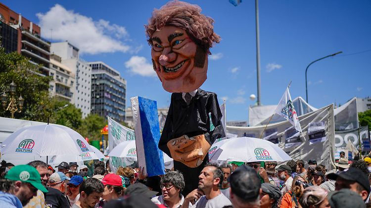 Am liebsten alles aus den vergangenen Jahrzehnten abreißen, dann mal sehen, was der freie Markt mit dem Schutt so anstellt, während er mit dem präsidentiellen Zepter ab und zu Dekrete absegnet. So ungefähr stellt sich Argentiniens libertärer Staatschef Javier Milei seinen Äußerungen und Reformprojekten zufolge seine vierjährige Amtszeit vor. Doch dagegen formiert sich heftiger Widerstand. Am Mittwoch legte ein Generalstreik weite Teile des öffentlichen Lebens lahm. Landesweit demonstrierten zudem Menschen, die Angaben reichen von 40.000 bis 600.000 in der Hauptstadt Buenos Aires und insgesamt bis zu 1,5 Millionen in ganz Argentinien.