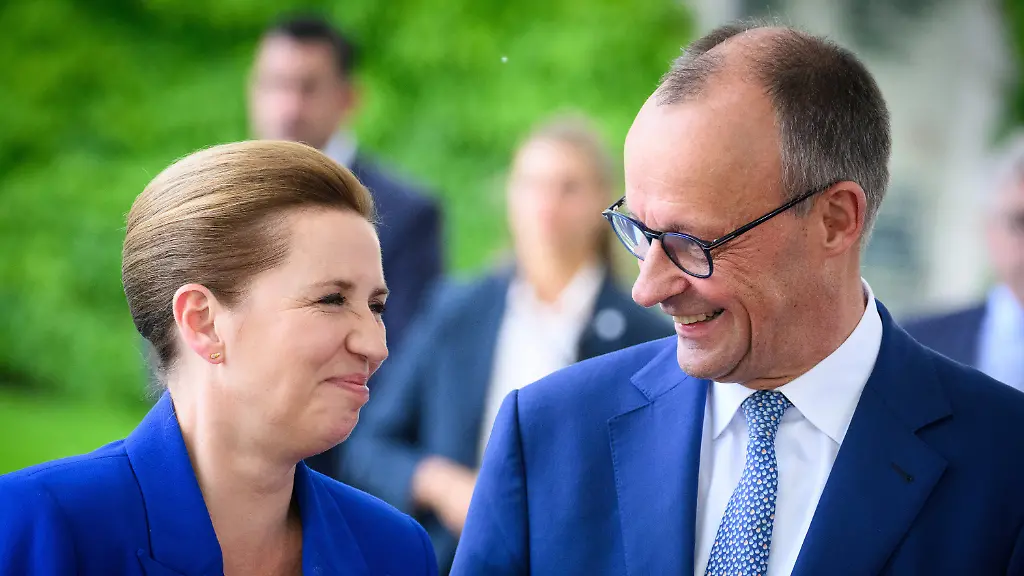 Frederiksen revanchierte sich mit einem Kompliment. Auf Deutsch zitierte sie das Sprichwort, nachdem der frühe Vogel den Wurm fange. "Du bist ein früher Vogel für Europa", sagte sie dann auf Englisch zu Merz. Sie freue sich, "deutsche Führung" mit dem Ziel eines stärkeren Europas zu sehen, "das wird gebraucht". Merz und sie seien bei den zentralen Themen einer Meinung, sagte sie. Die Notwendigkeit, Europa vor Russland zu schützen, stehe "ganz oben auf der Agenda".