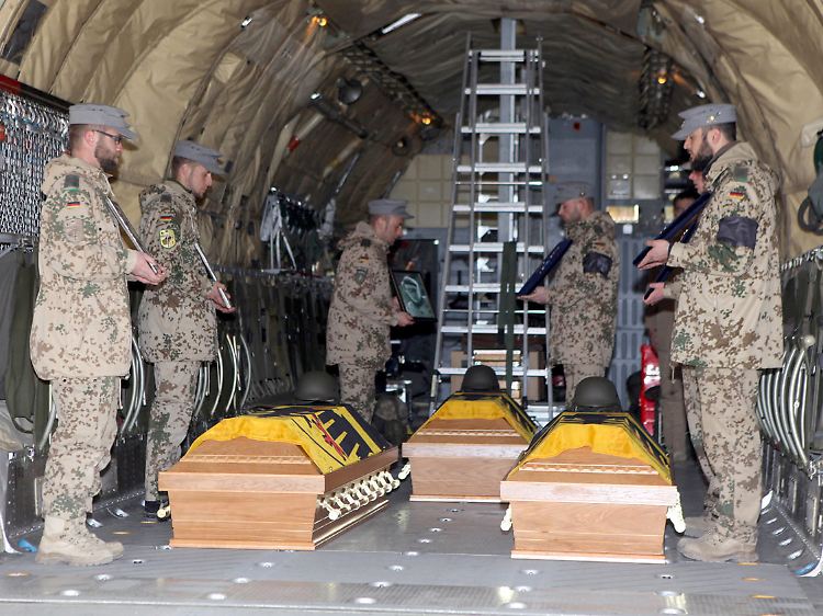 Zuvor hatten die deutschen Truppen in Masar-i-Scharif Abschied von ihren drei getöteten Kameraden genommen. Die Leichen der Gefallenen wurden durch ein Ehrenspalier von hunderten Soldaten zum Flughafen am Feldlager nahe der nordafghanischen Stadt gefahren. Die Toten wurden anschließend zum usbekischen Luftwaffenstützpunkt Termez und von dort weiter nach Deutschland geflogen.