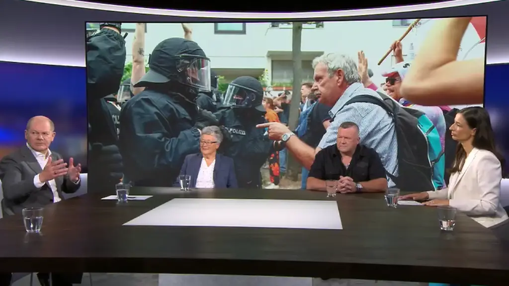 Kern der Sendung ist das Gespräch zwischen Scholz und vier ganz normalen Bürgern mit ganz normalen Sorgen. Wobei schnell klar wird, dass ihre Sorgen ganz unterschiedlich sind. Regine Springorum etwa, eine pensionierte Lehrerin aus Niedersachsen, hat sich sehr über Scholz' Aussage geärgert, dass die Aktionen der Letzten Generation "bekloppt" seien. Sie nahm selbst an Protesten der Gruppe teil und findet den Ausdruck des Kanzlers "populistisch und billig".