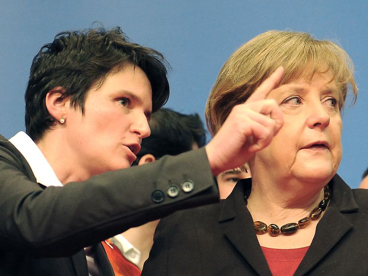 Tanja Gönner (l) verteidigt den Kurswechsel ihrer Chefin Angela Merkel.