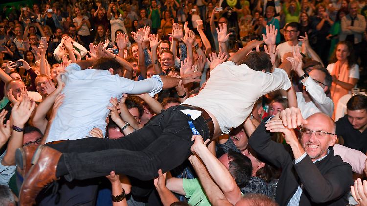 "Stagediving" auf der Wahlparty Die Grünen feiern sich wie Rockstars