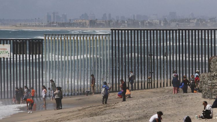Anwohner und Urlauber schauen am Strand von Tijuana durch den Grenzzaun auf San Diego.
