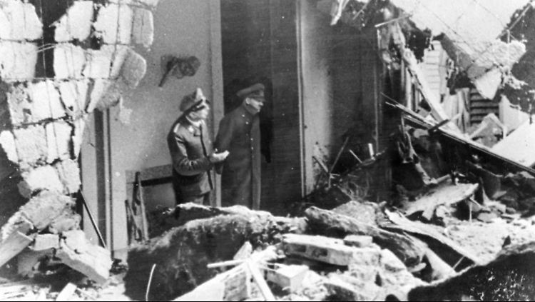 Hitler in den Räumen der zerstörten Reichskanzlei. Der Diktator weigert sich bis zuletzt, aus Berlin zu fliehen.