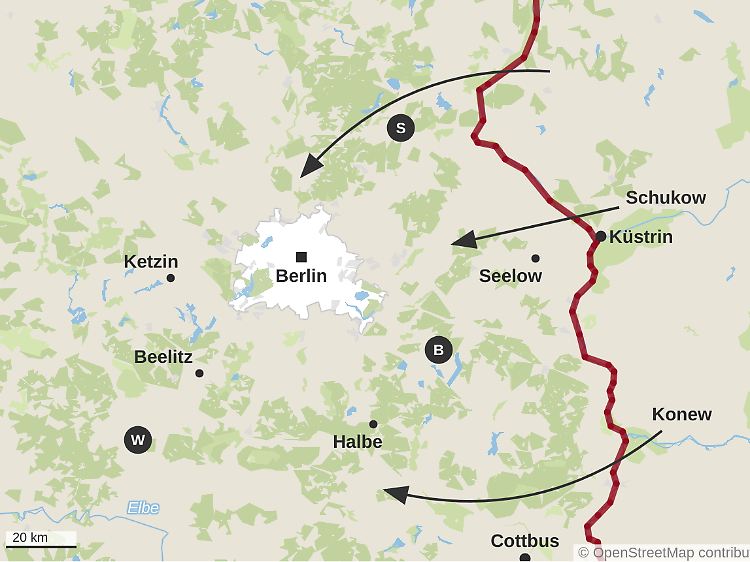 Vor 75 Jahren beginnt mit der sowjetischen Offensive an der Oder die Schlacht um die Reichshauptstadt und damit das letzte Kapitel Nazi-Deutschlands. Für die "Berliner Operation" zieht die Rote Armee 2,5 Millionen Soldaten, 41.000 Geschütze und fast 6300 Panzer an dem Fluss zusammen. Zwei Armeegruppen hat Stalin für den Angriff auserkoren: die 1. Weißrussische Front unter Schukow und die 1. Ukrainische Front unter Marschall Iwan Konew.