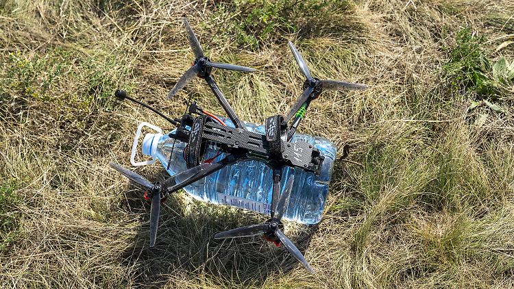 Drohnen mit Trinkwasserflaschen sollen Soldaten bei der Hitze in Bachmut erreichen.
