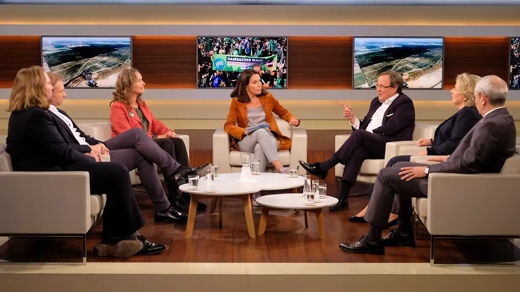 Bei Anne Will setzen sich mit dem Thema Größen aus Politik und Wirtschaft auseinander. Neben Umweltministerin Svenja Schulze von der SPD diskutieren Armin Laschet von der CDU, Ministerpräsident von Nordrhein-Westfalen, der FDP-Vorsitzende Christian Lindner, Grünen-Fraktionschef Anton Hofreiter, Antje Grothus von der Initiative "Buirer für Buir" und Michael Vassiliadis, Vorsitzender der IG Bergbau, Chemie, Energie.
