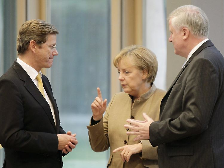Kanzlerin Merkel kommt mit ihren Parteichef-Kollegen Westerwelle und Seehofer zu einem neuerlichen Sechs-Augen-Spitzentreffen zusammen.