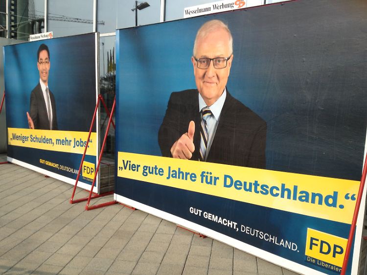 Seine Metaphern toppt ein wahrhaftiges Bild: Auf einem rund zehn Quadratmeter großen Plakat am Eingang der Nürnberger Messe prangt Brüderle mit einem verschmitzen Grinsen – und reckt ausgerechnet seinen hochgestreckten Daumen Richtung Kamera. Eine Geste, die derart aus der Zeit gefallen ist, dass sie selbst beim 67-Jahre alten, leibgewordenem "Herrenwitz" unpassend wirkt.