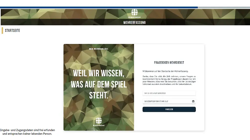 Vorgelegt wurde auch der künftige Fragebogen, mit dem ab dem Geburtsjahrgang 2008 persönliche Auskünfte abgefragt werden. Junge Männer müssen, Frauen können diese Fragen beantworten. Die per Post verschickten Anschreiben werden laut dem Ministerium einen QR-Code enthalten, der über einen Online-Link zum Fragebogen führt. Dieser umfasst den Angaben zufolge zwölf Fragen, unter anderem zum Gesundheitszustand, Bildungsabschlüssen, Motivation, Fahrererlaubnis und körperlicher Fitness. Laut Bundeswehr soll das Ausfüllen des Online-Fragebogens nicht länger als 15 Minuten dauern.