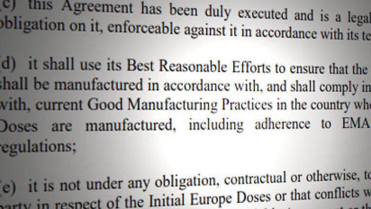In dem von der Kommission veröffentlichten Dokument ist tatsächlich mehrmals von "besten vernünftigen Bemühungen" die Rede. Astrazeneca werde diese etwa unternehmen, um die vereinbarten Dosen zu liefern und nach Möglichkeit in Werken in der EU zu produzieren. Das Unternehmen versichert darüber hinaus, den Vertrag als "rechtliche, gültige und verbindliche Verpflichtung" zu respektieren.