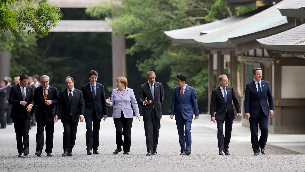 Abe empfing Bundeskanzlerin Angela Merkel und die Staats- und Regierungschefs aus USA, Großbritannien, Frankreich, Italien und Kanada am heiligen Ise-Jingu-Schrein. Als EU-Vertreter nehmen Ratspräsident Tusk und Kommissionspräsident Jean-Claude Juncker an dem Treffen teil. Vor Beginn ihrer politischen Gespräche besichtigten die Gipfelteilnehmer das Gelände des 2000 Jahre alten Schreins und pflanzten mehrere Bäume.