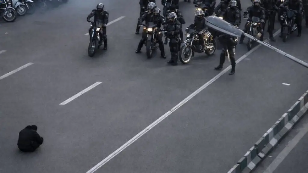 Manche bezeichnen es als Irans "Tiananmen-Moment": In Onlinenetzwerken ist ein Video viral gegangen, das einen Demonstranten zeigt, der während der in den vergangenen Tagen ausgebrochenen Proteste auf der Straße sitzt und sich der Polizei auf Motorrädern entgegenstellt. In dem Video ist ein Mensch zu sehen, der auf der Straße sitzt und seinen Kopf vor mehr als 20 Polizisten auf Motorrädern, die Helme tragen und ganz in Schwarz gekleidet sind, gesenkt hält. Hinter der Person rennt eine Menschenmenge, um Tränengaswolken zu entkommen, wie in dem Video zu sehen ist.