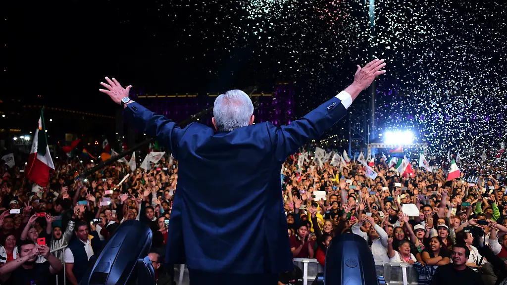 In der Stunde des Triumphs sind die letzten Meter die schwierigsten. Andrés Manuel López Obrador, unangefochtener Sieger der Präsidentschaftswahl in Mexiko, versucht die Bühne auf dem zentralen Zócalo-Platz per Auto zu erreichen. Als die Bilder seiner nahenden Ankunft auf der riesigen Leinwand erscheinen, umringen seine Anhänger den Wagen. Es dauert einige Minuten, bis er es hinter und dann auf die Bühne schafft. Der Hoffnungsträger der mexikanischen Linken winkt in die Menge, der Wahlkampfsong seiner Partei Morena schmettert aus den Boxen, in Nationalfarben angestrahltes Konfetti wirbelt durch die Luft. "Pre-si-den-te! Pre-si-den-te!" jubeln Zehntausende.