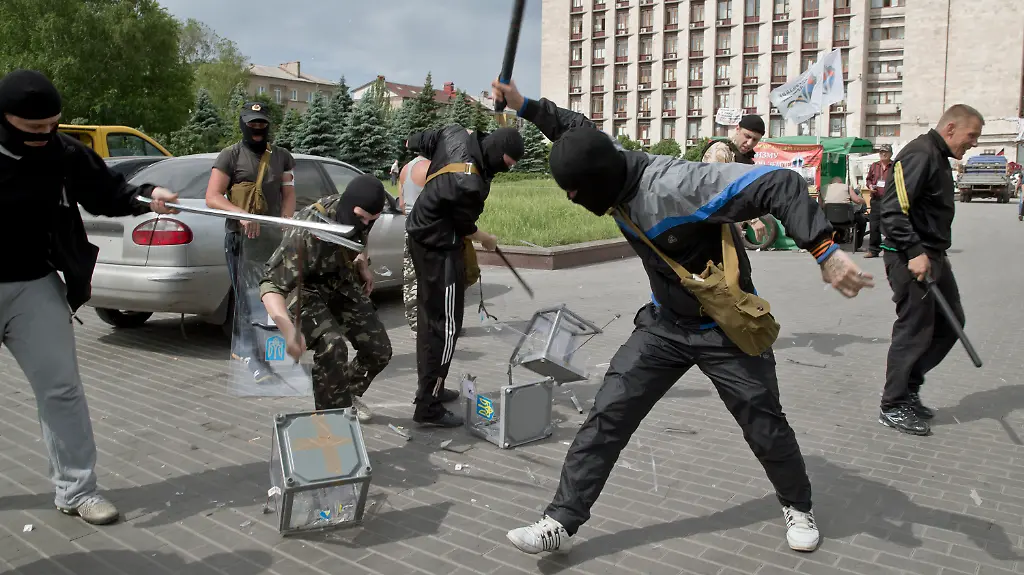 Nur ein Bruchteil der Wahllokale in den östlichen Oblasten ist wirklich geöffnet. Bilder zeigen Schlägertrupps in Donezk, die Wahlurnen auf die Straße tragen und öffentlichkeitswirksam zertrümmern. Andernorts werden ganze Wahllokale in Brand gesteckt. Und wo gewählt werden kann, sind Kämpfer in Tarnfleck nicht weit. Die Botschaft ist klar: Wer wählen geht, ist gegen den Anschluss an Russland - und bekommt es mit den Kämpfern zu tun. Eine Drohkulisse, vor der ernsthafte demokratische Wahlen eigentlich undenkbar sind.