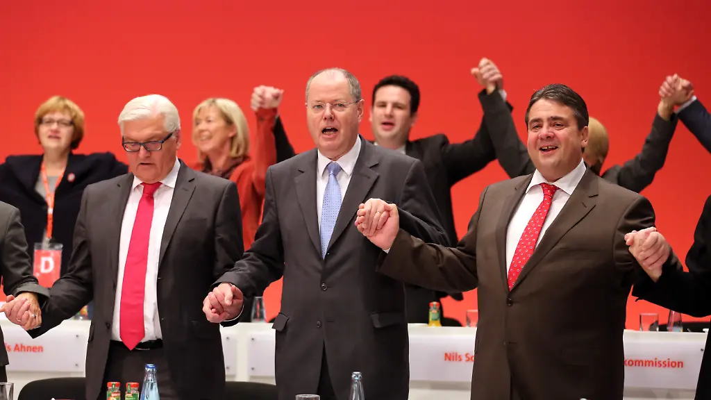 Das Regieren macht sie schwach, die Opposition stark: Für die SPD wurde diese Formel oft angewandt. Inzwischen scheint sie jedoch nicht mehr zu greifen. Die Zäsur, die 2009 mit dem historischen Tief von 23 Prozent verbunden schien, ist bis heute nicht überwunden. Weniger als zehn Prozent der Menschen vertrauen laut Forsa noch auf die Problemlösungskompetenz von Steinbrück & Co. In vielerlei Hinsicht ist wenig übrig geblieben von dieser einst so stolzen Volkspartei. Ihre Mitgliederzahl hat sich seit 1990 halbiert. Seit 1998 sank die Zahl der SPD-Wähler von über 21 auf unter 10 Millionen bei der letzten Bundestagswahl.