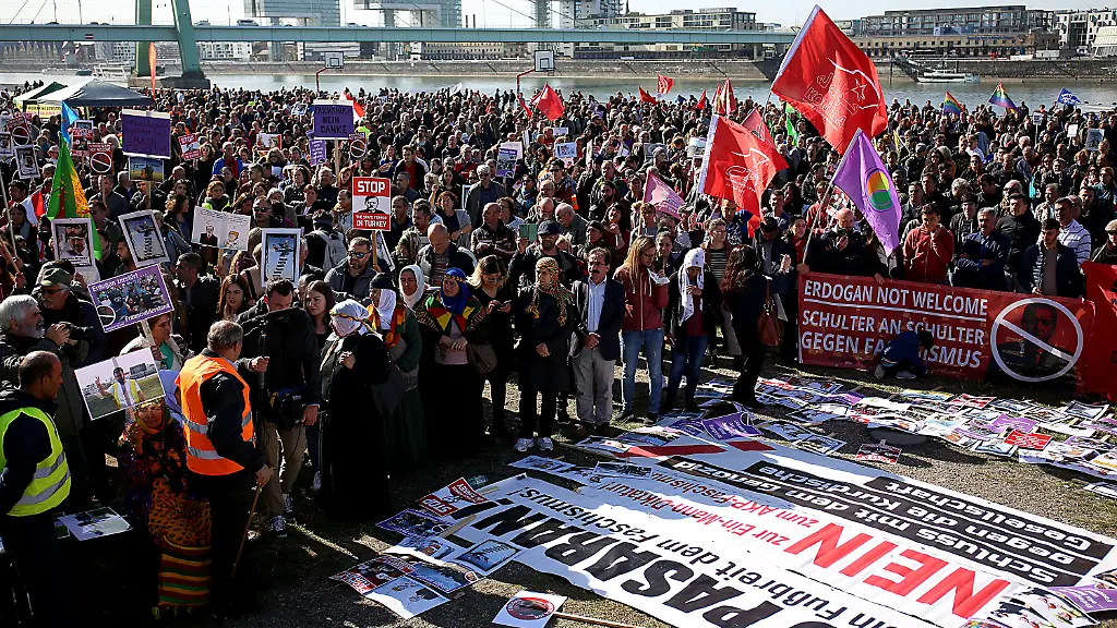 Als der türkische Präsident Recep Tayyip Erdogan auf dem Kölner Flughafen eintrifft, haben sich in der Kölner Innenstadt längst seine Gegner zu Protesten versammelt. "Dass er nach Köln kommt, ist eine Provokation. Wir sind hier um zu zeigen: Köln mag dich nicht", sagt ein 22-jähriger Student am Rande der Anti-Erdogan-Kundgebung in Köln-Deutz.