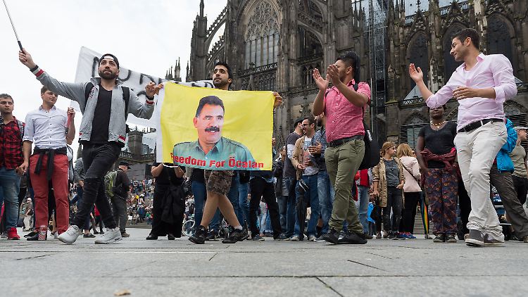 Sei Gesicht ziert auch die gelben Fahnen, die vor der Bühne geschwenkt werden. "PKK-Verbot aufgeben", steht auf Transparenten. Ein paar junge Frauen tragen grüne Kampfanzüge, versehen mit einem Aufnäher der YPG - jener syrisch-kurdischen Truppe, die im Norden Syriens eine friedliche Zone gegen den Islamischen Staat verteidigt und als engster Verbündeter von Nato und USA in dem Land gilt.