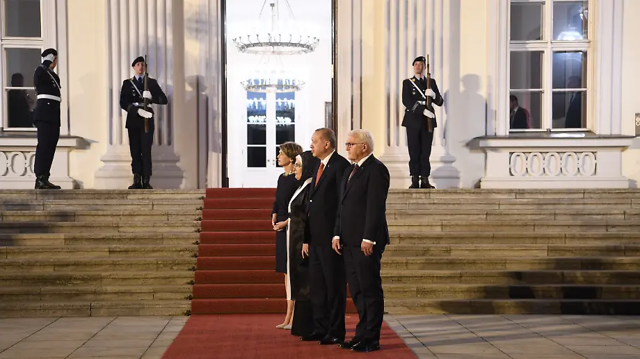 Zu dem Staatsbankett hatte Bundespräsident Frank-Walter Steinmeier eingeladen. Mehrere Oppositionspolitiker blieben dem Abendessen im Berliner Schloss Bellevue aus Protest gegen die autoritäre Politik Erdogans fern.