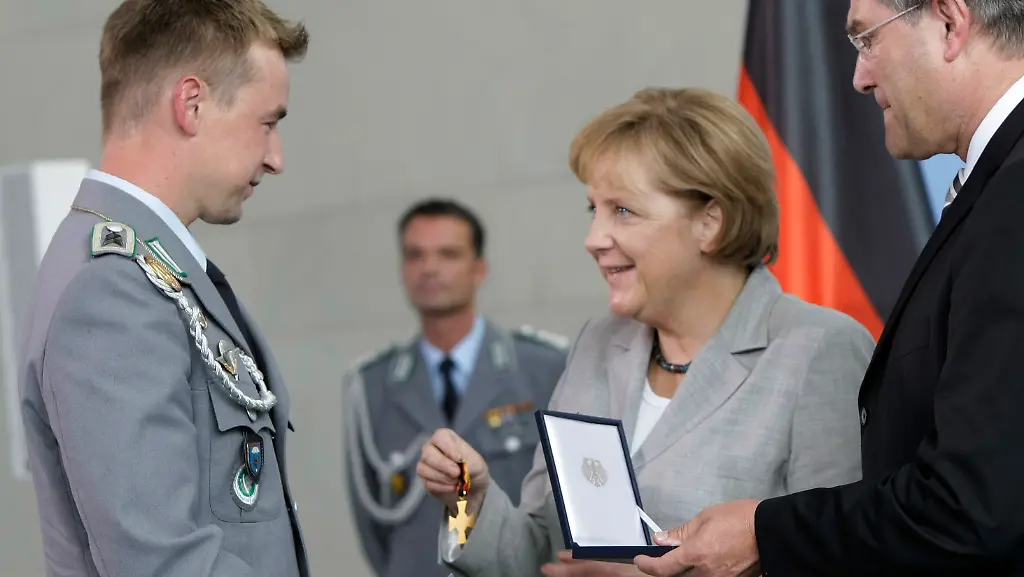 Die Soldaten hätten bei ihrem Einsatz in Afghanistan in akuter Lebensgefahr alles getan, um ihren Kameraden und mehreren einheimischen Kindern zu helfen, sagte Merkel bei einer Feierstunde im Bundeskanzleramt. Zugleich appellierte sie an die Bevölkerung, Leistung und Belastungen der Bundeswehr stärker zu würdigen. "Wir reden darüber in Deutschland immer noch zu wenig. Unsere Soldaten müssen für ihren Einsatz mehr Anerkennung erhalten", betonte die Kanzlerin. Die neue Auszeichnung geht auf Anregung des Verteidigungsministers und CDU-Politikers Franz Josef Jung zurück.