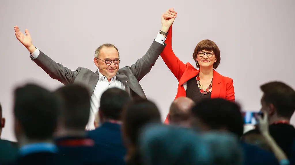 "Klare Kante", "Solidarität" und "sozialdemokratische Inhalte" sind die Kampfbegriffe, mit denen die SPD "in die neue Zeit" starten will. Auf dem Bundesparteitag schallen die Worte immer wieder durch die Betonhallen der Berliner Messe. Der Wunsch nach einem Neuanfang ist in der gebeutelten Partei groß. Ihre neuen Hoffnungsträger: Saskia Esken und Norbert Walter-Borjans. Auch wenn sich das Duo aus dem linken Lager beim Mitgliederentscheid nur knapp durchsetzen konnte, ist von Zerrissenheit an diesem Wochenende kaum etwas zu spüren. Zu groß ist der Wunsch, als Partei wieder Boden unter den Füßen zu bekommen. Doch Euphorie bricht auch nicht aus.