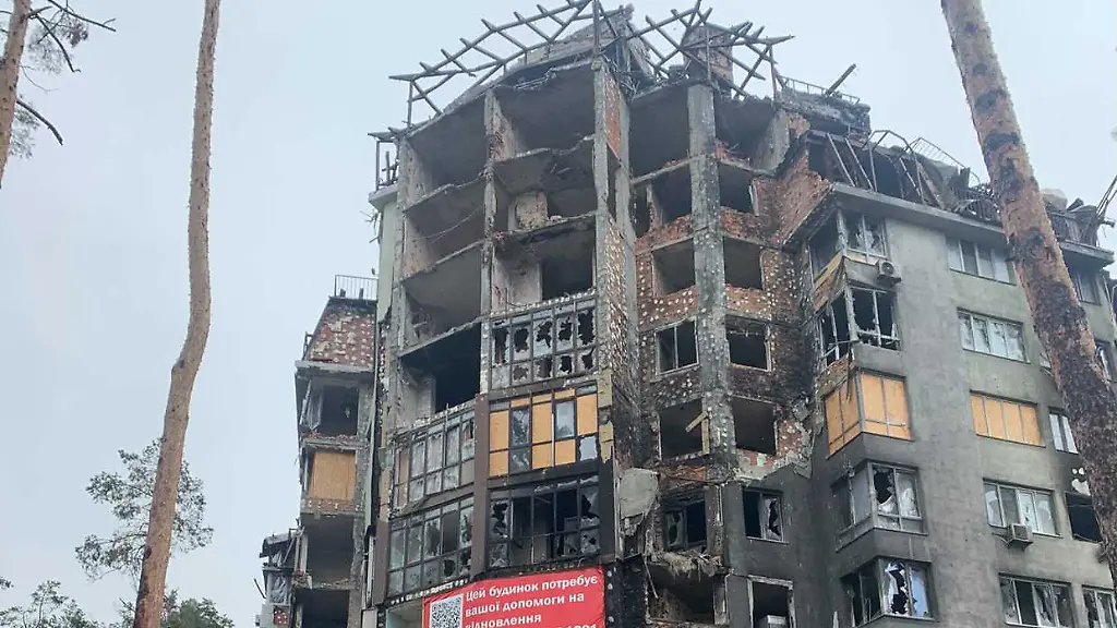 Das Haus, in dem die Wohnung liegt, stand in der ersten Verteidigungslinie von Irpin. Hier gab es Straßenschlachten. Eine feindliche Rakete traf das Gebäude direkt nebenan, Feuer brach aus. Einige der oberen Stockwerke sind einfach weg. Im Vergleich habe ich Glück gehabt. Aber verkaufen kann ich die Wohnung so nicht mehr. Als wir ankamen, gab es keine Fenster, die Rahmen waren beschädigt, die Wände und die Decke im Schlafzimmer hatten Löcher wie ein Sieb, in den Möbeln und Türen steckten viele Splitter, es gab Einschusslöcher. Auch ein paar Wände wurden eingerissen.