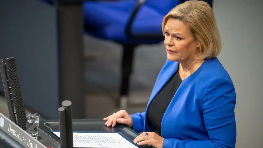 Bundesinnenministerin Nancy Faeser hat ihr Abschiebegesetz als Voraussetzung für die gesellschaftliche Akzeptanz von Migration verteidigt. "Wer kein Recht hat zu bleiben, muss Deutschland wieder verlassen", sagte sie im Bundestag bei der ersten Lesung des Gesetzesentwurfs. "Diesen Grundsatz müssen wir auch durchsetzen können - anderseits schaden wir unserem Gemeinwesen."