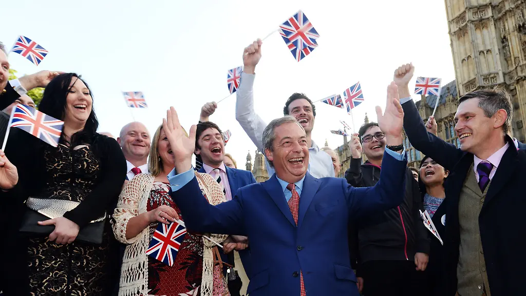 Nigel Farage kann es kaum erwarten, vor die Kameras zu springen. Es ist nicht mal acht Uhr, als er im Parlamentsviertel Westminster seine Siegesrede hält. "Sehen Sie sich das an", witzelt der Chef der Anti-EU-Partei Ukip. "Sogar das Wetter hat sich verbessert".
