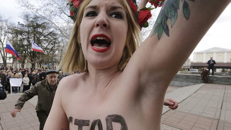 Halbnackt gegen "Putins Krieg" Femen-Frauen protestieren auf der Krim