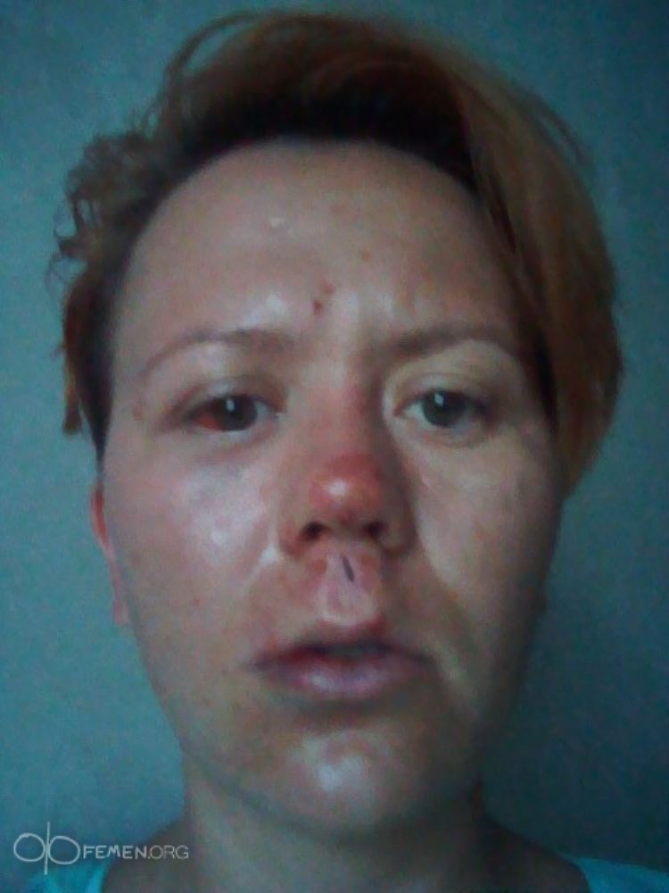 Nach dem Vorfall veröffentlichte Femen mehrere Fotos. Sie zeigen die Aktivisten mit zerschundenen Gesichtern.