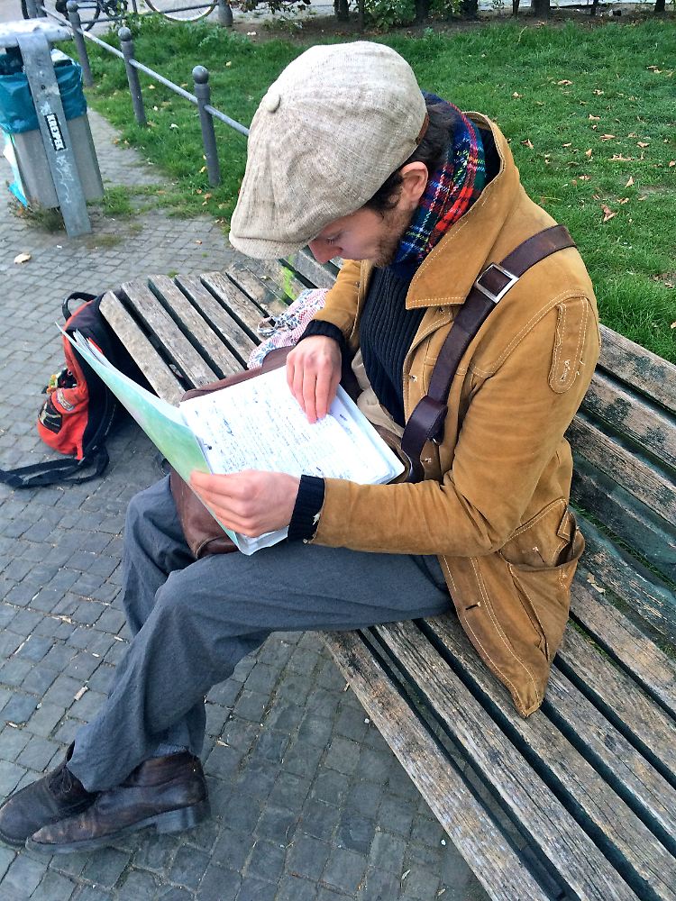 Johann lässt das alte Telefon in seine Tasche gleiten. Er schaut grübelnd auf seine Liste, die nun vollends im Regen verschmiert, und blickt Richtung Oranienplatz. "Es kann ziemlich trostlos sein, im Regen oder auch im ganzen Winter da alleine auf dem O-Platz zu stehen."