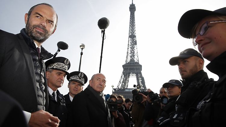 Edouard Philippe nutzt die weltbekannte Kulisse des Pariser Eiffelturms, um seine Landsleute zu beruhigen. Zwar laufe der Ausnahmezustand aus, sagt der französische Premierminister. Doch Polizisten und Soldaten würden weiterhin auf den Straßen patrouillieren.
