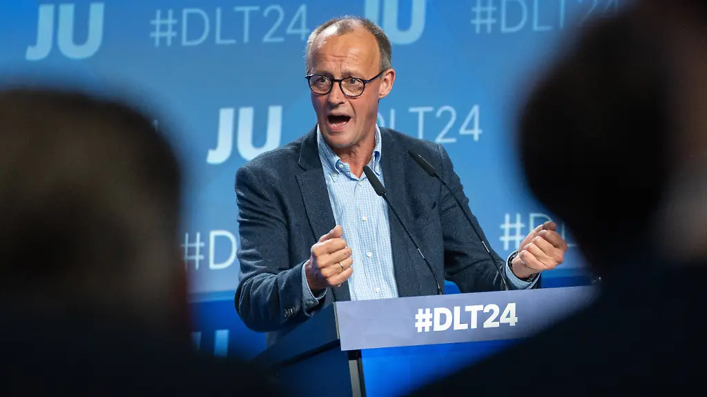 Unions-Kanzlerkandidat Friedrich Merz will im Falle eines Wahlsieges das Wirtschafts- und Arbeitsministerium zusammenlegen und in der Bundesverwaltung einen weitgehenden Einstellungsstopp verhängen. "Arbeitsmarktpolitik ist Wirtschaftspolitik und nicht Sozialpolitik", sagte er auf dem Deutschlandtag der Jungen Union, der Nachwuchsorganisation von CDU und CSU. Niemand wäre bei zusammengelegten Zuständigkeiten "auf die Schnapsidee" gekommen, ein Bürgergeld einzuführen. Merz kündigte zudem an, im Falle eines Wahlsieges ein "Bürokratie-Moratorium" auszusprechen, bei dem zwei Regelungen verschwinden müssten, wenn eine neue Regelung eingeführt werde.