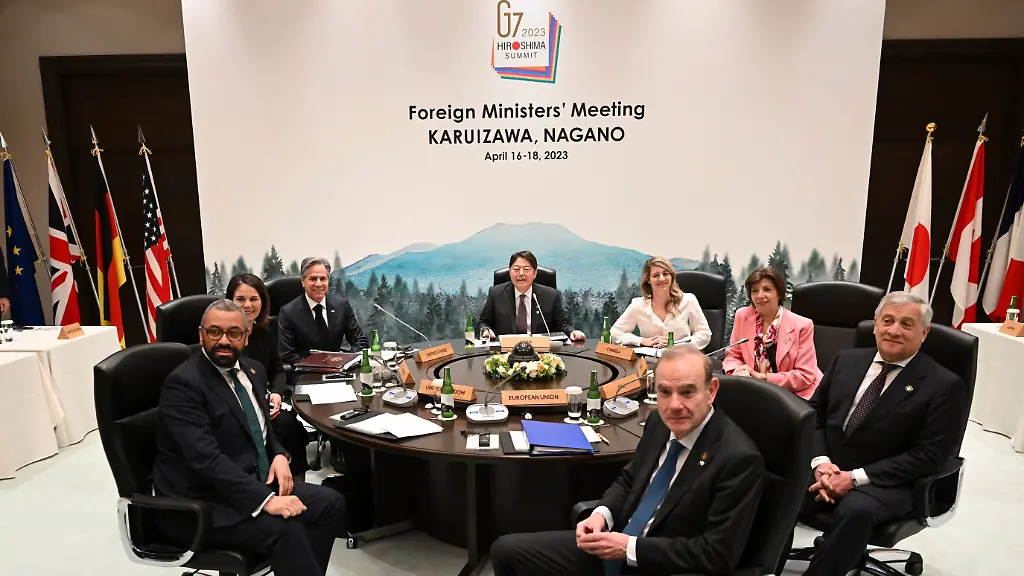 Die G7-Runde wirtschaftsstarker Demokratien hat China unmissverständlich zur Einhaltung internationaler Regeln aufgefordert. "Wir erinnern China an die Notwendigkeit, die Ziele und Grundsätze der Charta der Vereinten Nationen zu wahren und auf Drohungen, Zwang, Einschüchterung oder die Anwendung von Gewalt zu verzichten", heißt es in einer gemeinsamen Erklärung zum Abschluss des G7-Außenministertreffens im japanischen Karuizawa. Die Runde machte zugleich deutlich, dass sie zu einer Verschärfung der Sanktionen gegen Russland wegen des Angriffskrieges gegen die Ukraine bereit ist.
