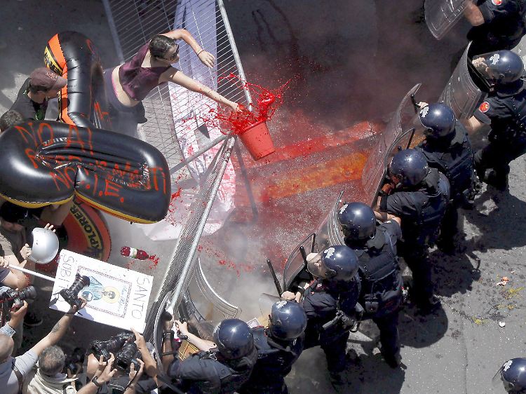 Auch bei dem weiteren Programm des Revolutionsführers kam es zu heftigen Protesten: Studenten der römischen Universität La Sapienza, wo Al-Gaddafi zu einer Debatte geladen war, pfiffen den Libyer aus. Zuvor war es bereits zu Zusammenstößen zwischen den auf Al-Gaddafi wartenden Studenten und der Polizei gekommen. Vorgeworfen wird dem Revolutionsführer vor allem, dass Italien als Zeichen der engeren Zusammenarbeit seit kurzem Bootsflüchtlinge direkt wieder nach Libyen abschieben kann.