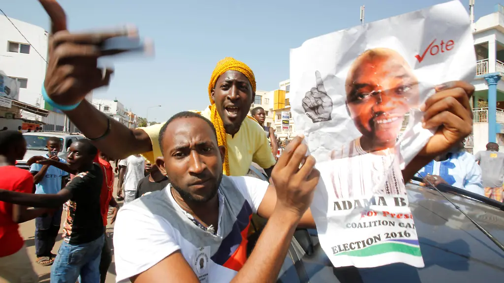 Barrows Anhänger feierten den Sieg auf den Straßen. Viele rissen Wahlplakate des bisherigen, autokratisch regierende Präsidenten Jammeh herunter, der ein weiteres fünfjähriges Mandat an der Spitze des verarmten Landes angestrebt hatte.
