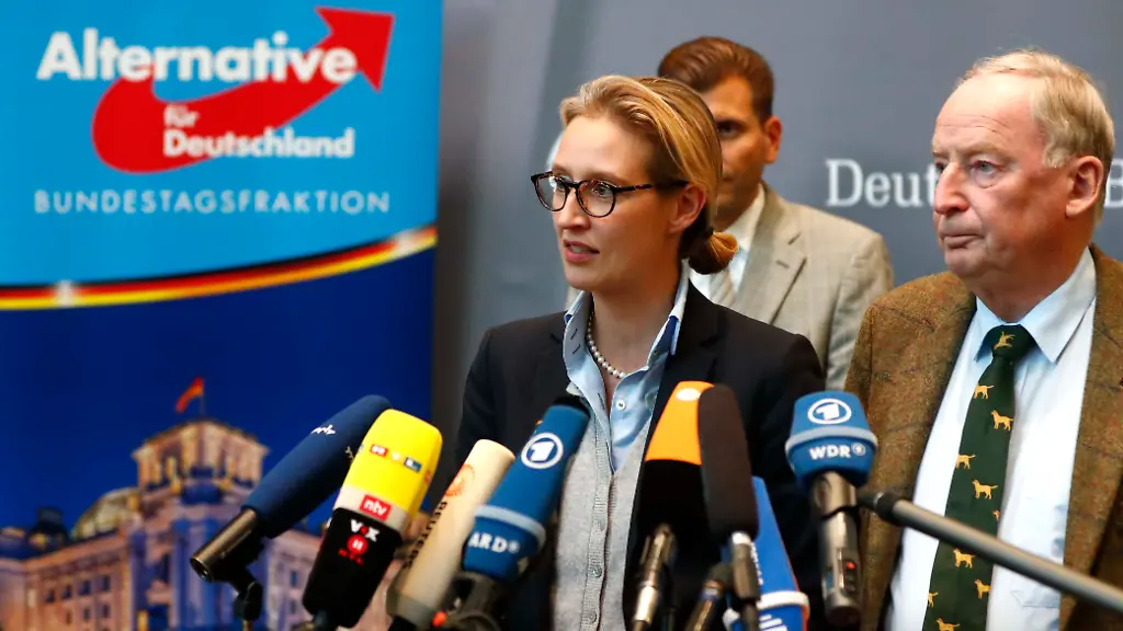 Die Spitzenkandidaten der AfD aus dem Wahlkampf führen auch die Bundestagsfraktion der Partei. Die 93 AfD-Abgeordneten wählten in ihrer ersten Sitzung Alexander Gauland und Alice Weidel mit 86 Prozent der Stimmen zu Co-Vorsitzenden. Das teilten Gauland und Weidel im Anschluss mit.
